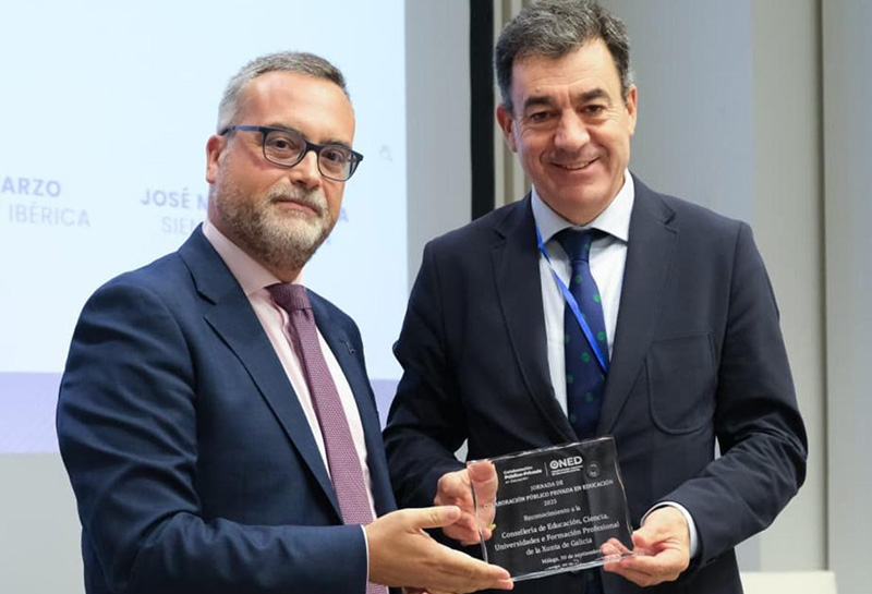 El conselleiro de Educación, Ciencia, Universidades e FP, Román Rodríguez, recogió esta mañana en Málaga este galardón, en un acto que tuvo lugar con motivo de las Jornadas de colaboración público-privada en educación organizadas por esta organización, cuyo trabajo se centra precisamente en generar conocimiento colectivo y ofrecer información actualizada sobre la educación digital en España.