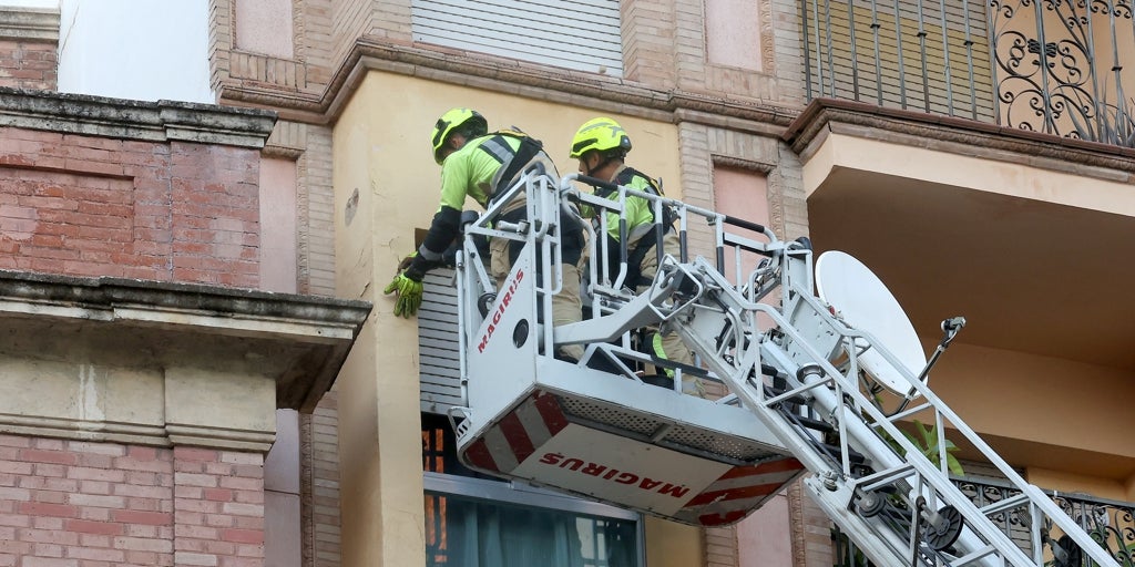 Comerciantes de la zona han avisado a los Bomberos que han intervenido en la retirada de los cascotes de una cornisa y de la propia fachada del inmueble, lo que ha obligado a a la Policía Local a cortar la circulación durante unos treinta minutos para las labores de escalo de los efectivos del SEIS.